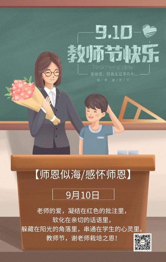老師,在這特殊的日子里,所有的祝福都帶著我們的愛,借著金秋的微風(fēng),飄送圍繞在你身旁。只愿你身體健康,快樂相隨!祝您教師節(jié)快樂!