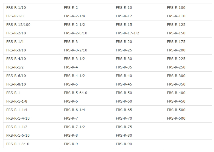 產(chǎn)品型號:FRS-R-1,F(xiàn)RS-R-1/10FRS-R-1/2,F(xiàn)RS-R-1/4,F(xiàn)RS-R-1/8,F(xiàn)RS-R-10,F(xiàn)RS-R-10,F(xiàn)RS-R-100,F(xiàn)RS-R-1-1/2,F(xiàn)RS-R-1-1/4,F(xiàn)RS-R-1-1/8,F(xiàn)RS-R-10,F(xiàn)RS-R-12,F(xiàn)RS-R-12,F(xiàn)RS-R-125,F(xiàn)RS-R-1-4/10,F(xiàn)RS-R-15,F(xiàn)RS-R-15,F(xiàn)RS-R-15/100,F(xiàn)RS-R-150,F(xiàn)RS-R-1-6