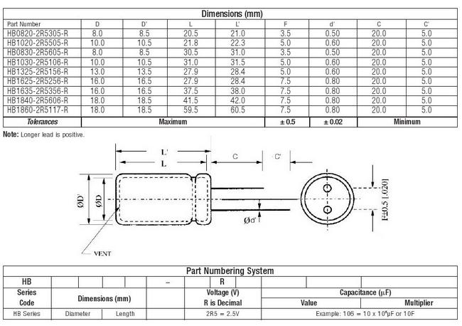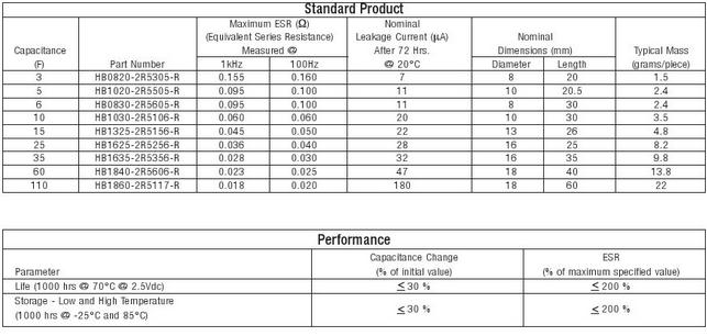 HB超級電容 HB0830-2R5605-R HB0820-2R5305-R HB1325-2R5156-R HB1625-2R5256-R HB1020-2R5505-R HB1030-2R5106-R HB1860-2R5117-R HB1840-2R5606-R HB1635-2R5356-R