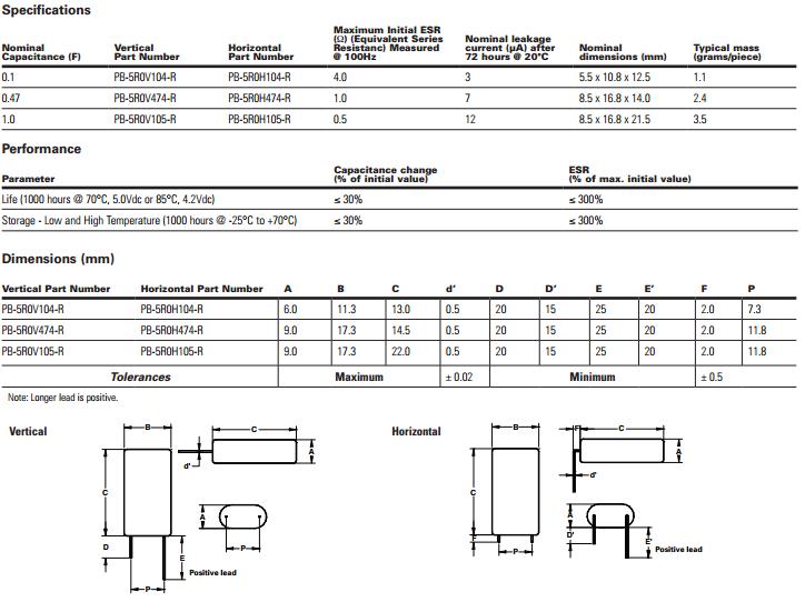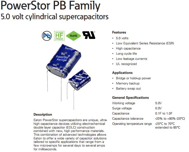PB系列超級電容EATON PB-5R0V474-R PB-5R0V105-R PB-5R0H105-R PB-5R0H104-R PB-5R0V104-R PB-5R0H474-R