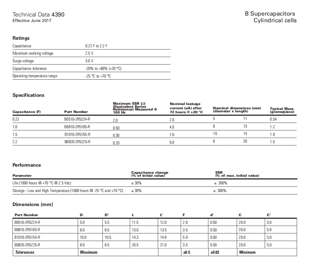 B系列超級(jí)電容 B0820-2R5225-R B0510-2R5224-R B0810-2R5105-R B1010-2R5155-R