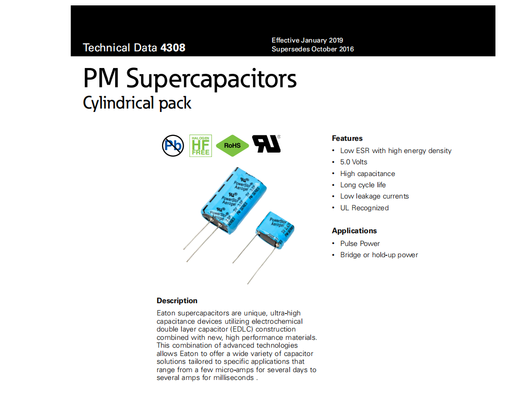 PM系列超級(jí)電容EATON PM-5R0H104-R PM-5R0H474-R PM-5R0H105-R PM-5R0H155-R PM-5R0V305-R PM-5R0V104-R PM-5R0V105-R PM-5R0H305-R PM-5R0V474-R PM-5R0V155-R