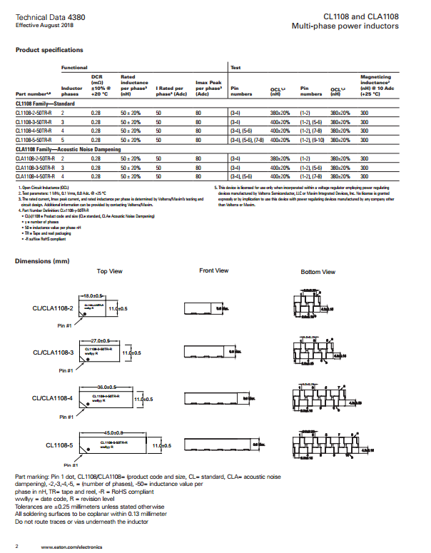 伊頓 CL1108&CLA1108系列電感 CLA1108-4-50TR-R,CLA1108-3-50TR-R,CLA1108-2-50TR-R,CL1108-5-50TR-R,CL1108-4-50TR-R,CL1108-3-50TR-R,CL1108-2-50TR-R