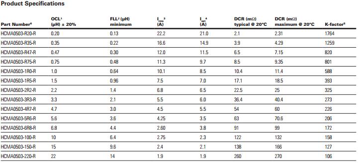 HCMA0503系列 功率電感 HCMA0503-R20-R HCMA0503-R35-R HCMA0503-R47-R HCMA0503-R75-R HCMA0503-1R0-R HCMA0503-1R5-R HCMA0503-2R2-R HCMA0503-3R3-R HCMA0503-4R7-R HCMA0503-5R6-R HCMA0503-6R8-R HCMA0503-100-R HCMA0503-150-R HCMA0503-220-R