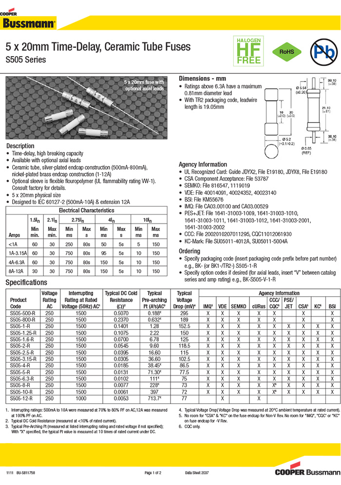 S505系列 慢斷陶瓷管保險(xiǎn)絲 S505-800-R S505-8-R S505-1-R S505-2.5-R S505-2-R S505-3.15-R S505-1.25-R S505-1.6-R S505-10-R S505-12-R S505-500-R S505-4-R S505-6.3-R S505-5-R