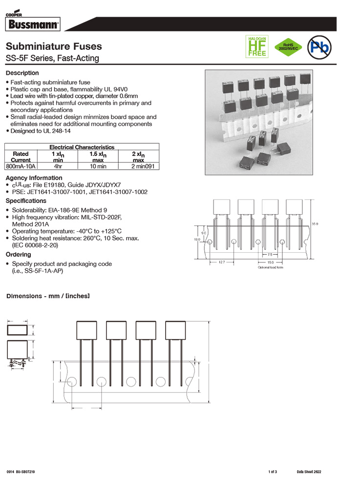 產(chǎn)品型號:SS-5F-8A,SS-5F-800mA,SS-5F-7A,SS-5F-6.3A,SS-5F-5A,SS-5F-4A,SS-5F-3.15A,SS-5F-2A,SS-5F-2.5A,SS-5F-1A,SS-5F-10A,SS-5F-1.6A,SS-5F-1.25A,