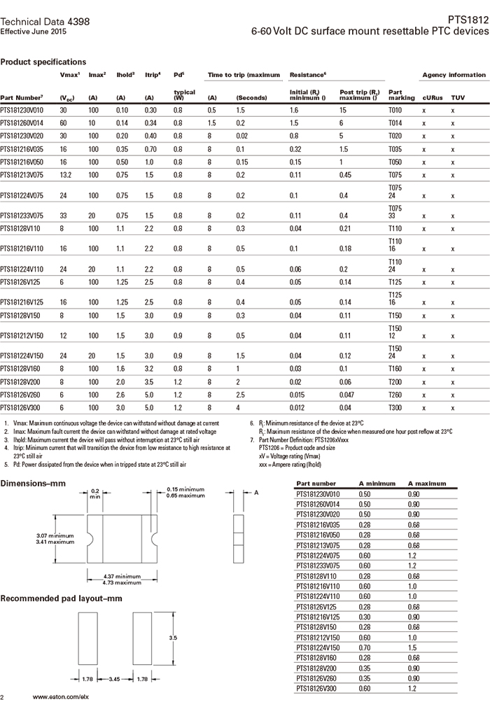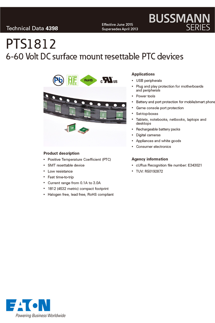 bussmann PTS18128系列 自恢復(fù)貼片保險(xiǎn)絲