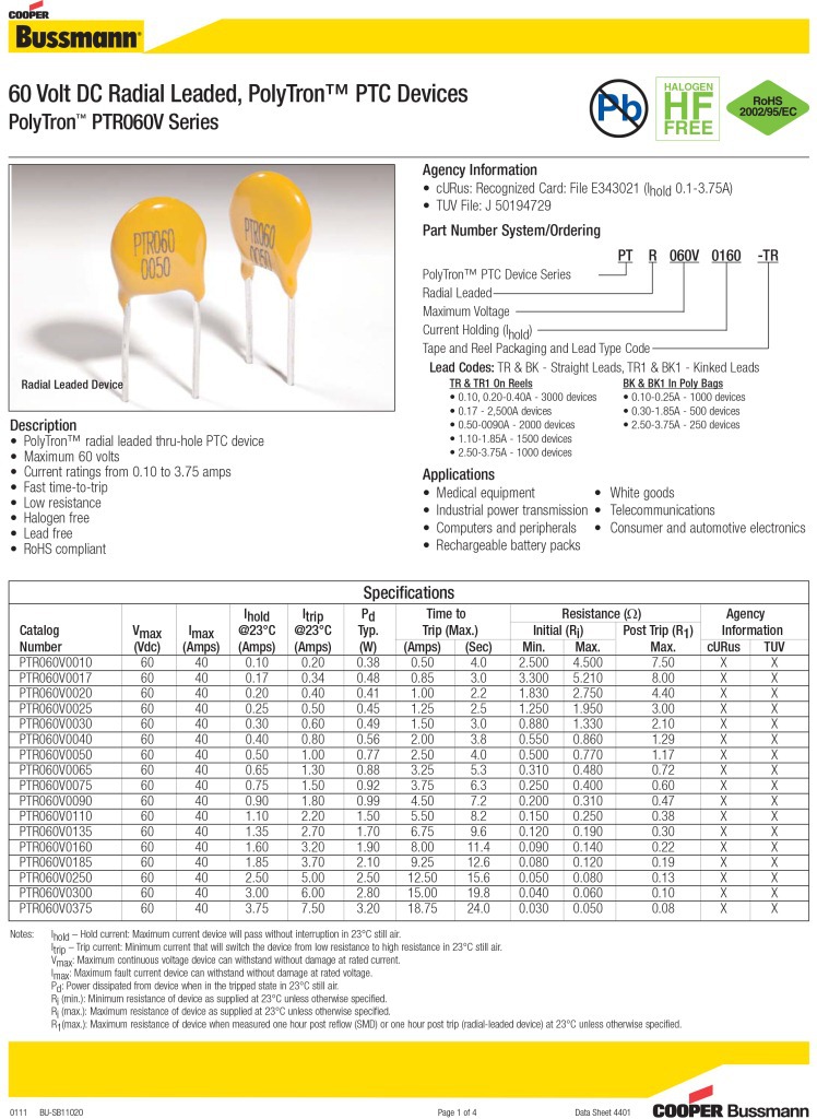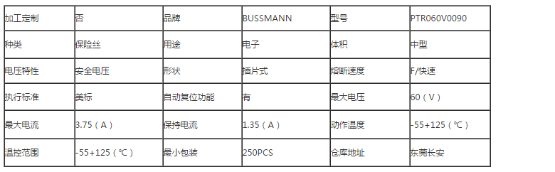 巴斯曼 PTR060V系列 可恢復(fù)保險絲