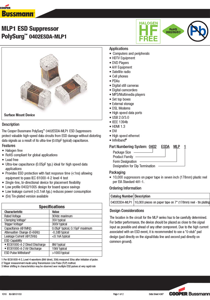 當(dāng)前位置:首頁>>產(chǎn)品中心>>Bussmann電子類產(chǎn)品>>ESD靜電抑制器