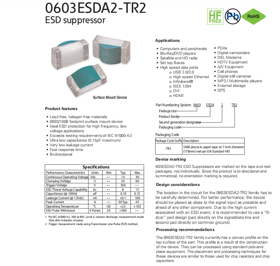 產(chǎn)品型號(hào):0603ESDA2-TR2