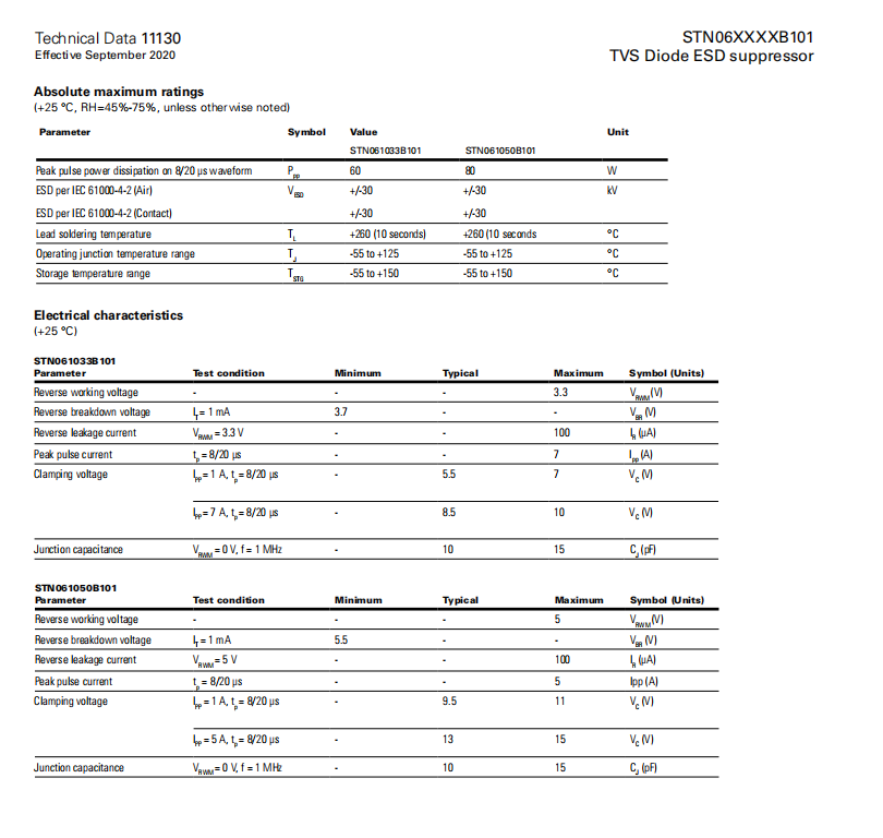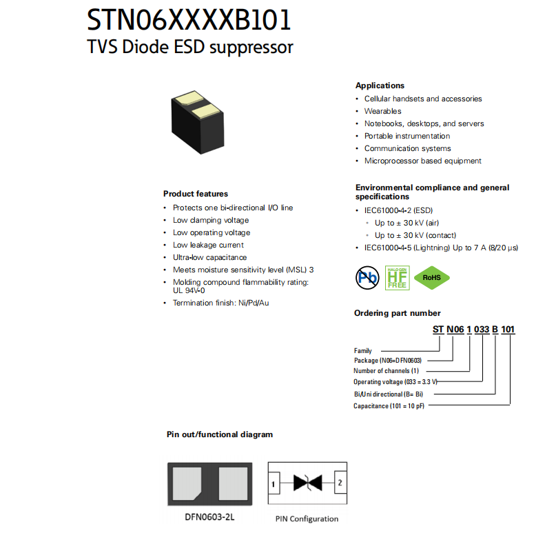 STN06XXXXB101 TVS二極管ESD抑制器