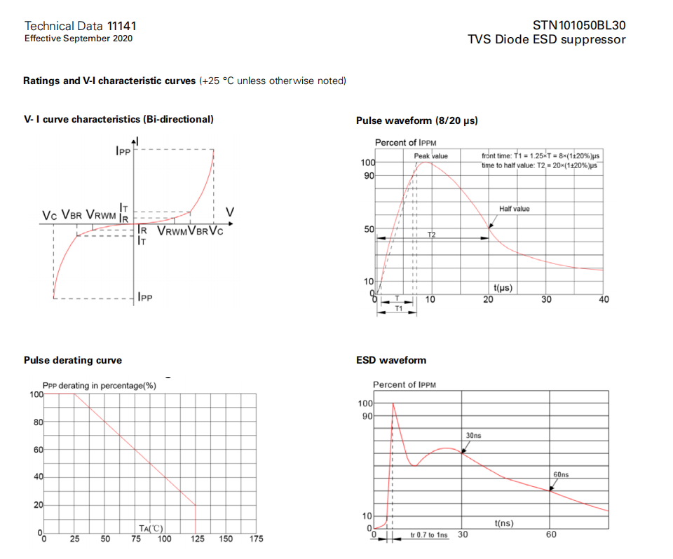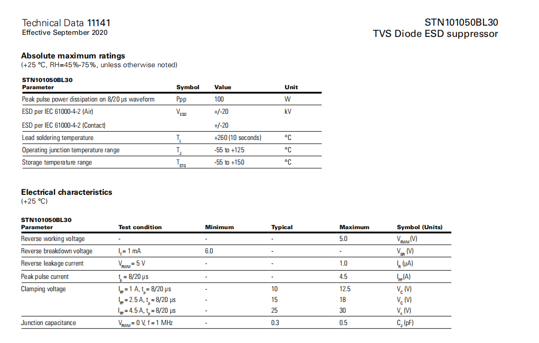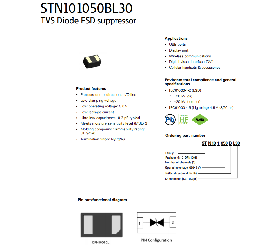 STN101050BL30系列 TVS二極管ESD抑制器
