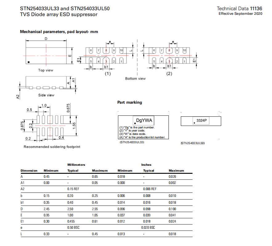 STN254033UL33系列 TVS二極管ESD抑制器