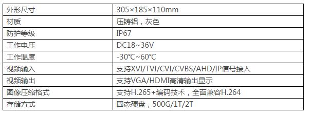 產(chǎn)品型號:產(chǎn)品概述: ① 一體集成分頻顯示及視頻存儲功能,簡化視頻監(jiān)控系統(tǒng); ② 內(nèi)置汽車級DCDC模塊,抗浪涌沖擊能力強; ③ 圖像壓縮碼流可調(diào),錄像畫質(zhì)可調(diào); ④ 工業(yè)級鑄鋁外殼,抗振